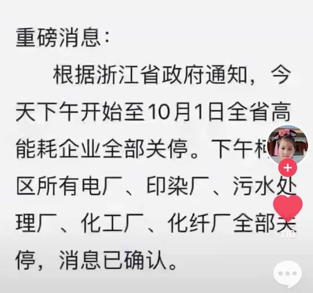 浙江:電廠、印染廠、化工廠、化纖廠全停