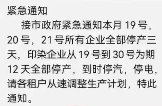 在全球印染之都紹興柯橋,印染企業(yè)從19號開始,一直停產到30號,這一波為期12天的停產令企業(yè)措手不及!