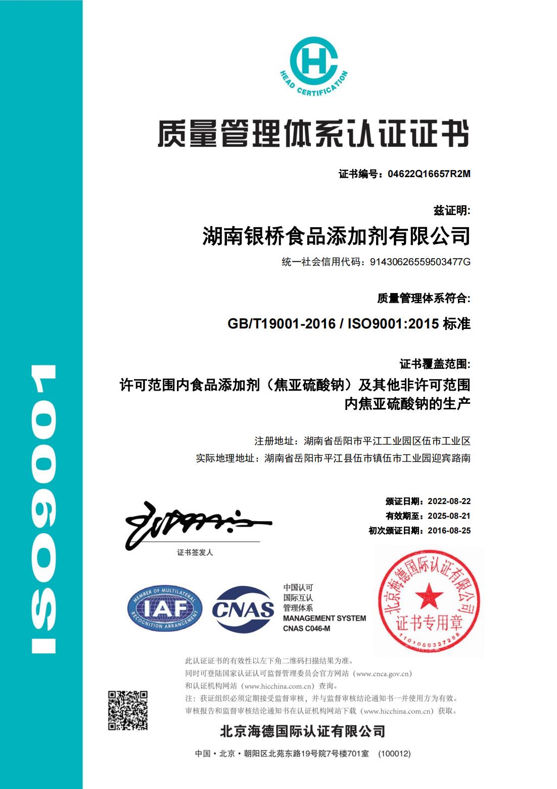 Quality management system certification